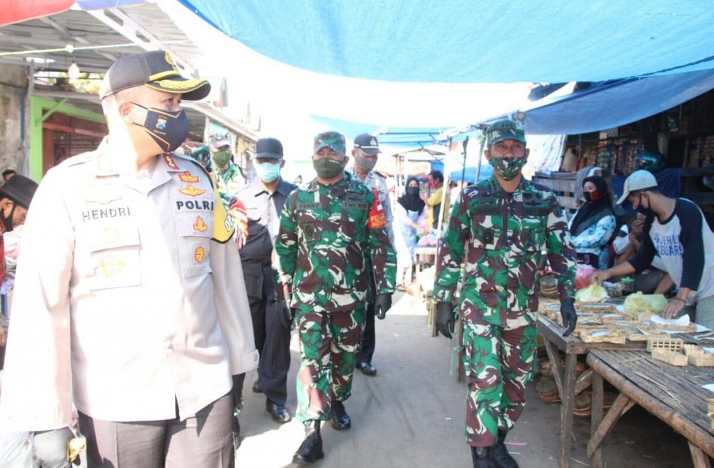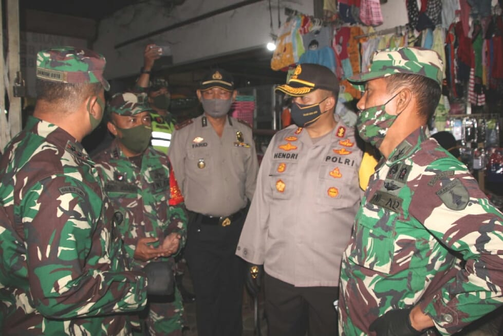 Malang,Memox.co.id- Kapolres Malang AKBP Hendri Umar S.I.K.MH sambut kedatangan staf ahli Pangdam V/Brw Kol Arh Wahyu dalam rangka pengecekan kesiapan Posko Pencegahan Covid-19 di Pasar Tradisional Singosari Kecamatan Singosari Kabupaten Malang, Jumat (05/06/2020).