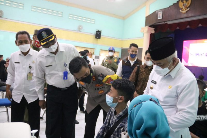 Malang, Memox.co.id – Kapolres Malang AKBP Bagoes Wibisono HK, S.I.K bersama Bupati Malang H. meninjau langsung pelaksanaan vaksinasi 5.000 dosis bagi pelajar dan masyarakat umum di SMKN 1 Singosari, Kabupaten Malang, Rabu (22/9/2021).