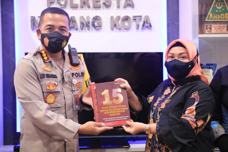 Pada kesempatan itu, Deputi Bidang Pelayanan Publik Kemenpan RB RI Prof. Dr. Diah memberikan buku pedoman 15 Finalis Kelompok Khusus Inovasi Pelayanan Publik Yang Berkelanjutan 2020 kepada Kapolresta Malang Kota Kombes Pol Dr. Leo Simarmata.