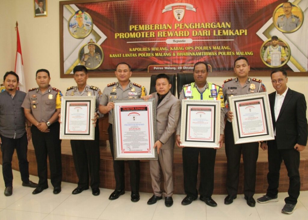 Ditahun ini Polres Malang berhasil mendapatkan 4 (Empat ) piagam penghargaan Promoter Reward dari Lemkapi termasuk kepada Kapolres Malang AKBP Yade Setiawan Ujung S.H.S.I.K.Msi sebagai Kapolres Teladan.