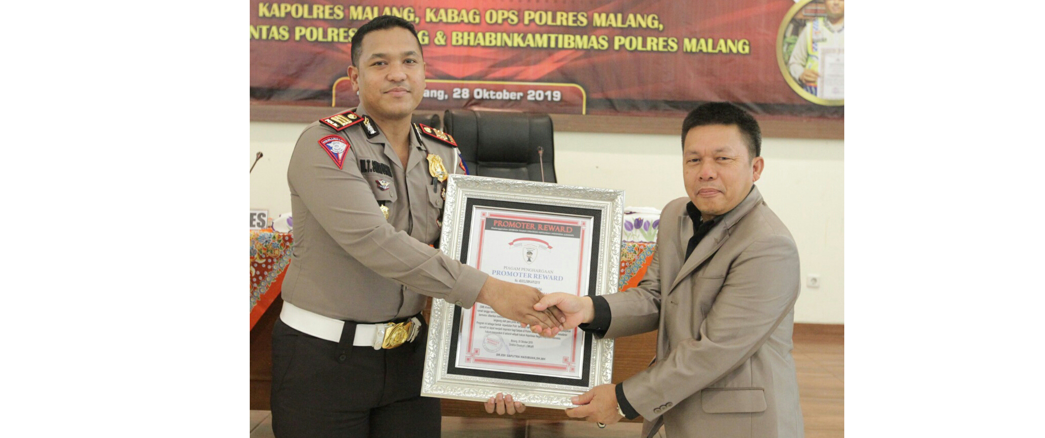 Berkat ide cemerlang yang tidak terlepas dari arahan serta petunjuk Kapolres Malang AKBP Yade Setiawan Ujung S.H.S.I.K.Msi mengantar Satlantas Polres Malang meraih penghargaan Promoter Reward dari Lemkapi, “ujar Kasat Lantas Polres Malang AKP WilliamThamrin Simatupang SIK.