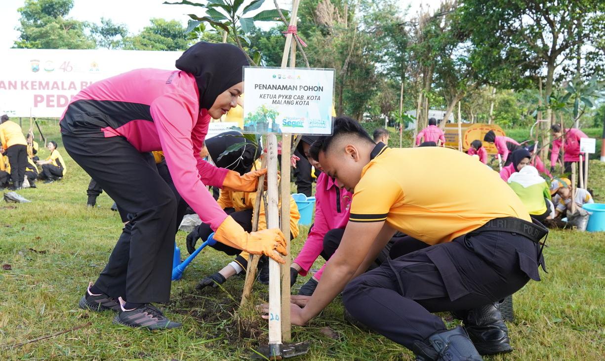 Tanam pohon bagian dari Gerakan Peduli Lingkungan yang digelar bersama Yayasan Kemala Bhayangkari Cabang Kota Malang, bersinergi dengan Perumda Tugu Tirta dan Dinas Lingkungan Hidup (DLH) Kota Malang.