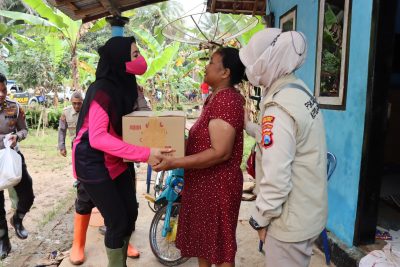 Pada kesempatan itu AKBP Kholis bersama Ketua Bhayangkari Cabang Malang Ny Ujik Putu juga menyerahkan secara simbolis 1.000 paket sembako beserta handuk dan selimut kepada posko tanggap bencana Poslap NU Peduli dan Posko GKJW Sitiarjo untuk kemudian dibagikan kepada seluruh korban terdampak banjir di Desa Sitiarjo.