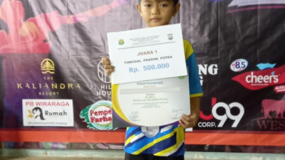 Kiano, turun dalam kelas tunggal putra yang digelar mulai Jumat 2 hingga 4 September 2022. “Meski masih banyak kekurangan disana sini. Alhamdulillah anak saya juara 1,” ungkap Kunari, orang tua Kiano.