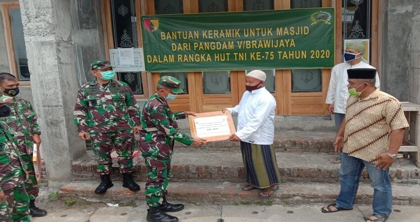 Malang, Memox.co.id – Dalam rangka HUT TNI Ke-75, Kodim 0818 bersama Korem 083/BDJ menyalurkan bantuan keramik dari Pangdam V/Brw Mayor Jenderal TNI Widodo Iryansyah, S.Sos., M.M melalui Kasrem 083 /Bdj Letkol Inf La Ode M. Nurdin bertempat di Masjid Al- Furqan Perum BMR Desa Watu Gede Kecamatan Singosari Kabupaten Malang, Jumat (09/10/2020).