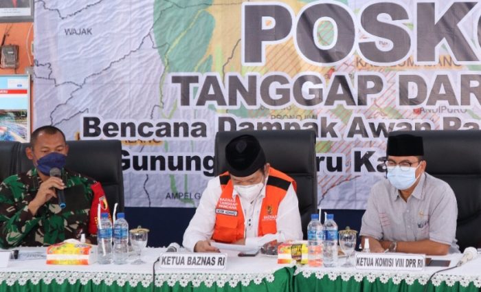 Di Posko utama Kecamatan Pasirian Bapak H. Yandi Susanto, S.Pt juga menyerahkan santunan kepada korban erupsi Gunung Semeru dan dilanjutkan peninjauan di tempat pengungsian Desa Jarit dan tempat pengungsian Penanggal.