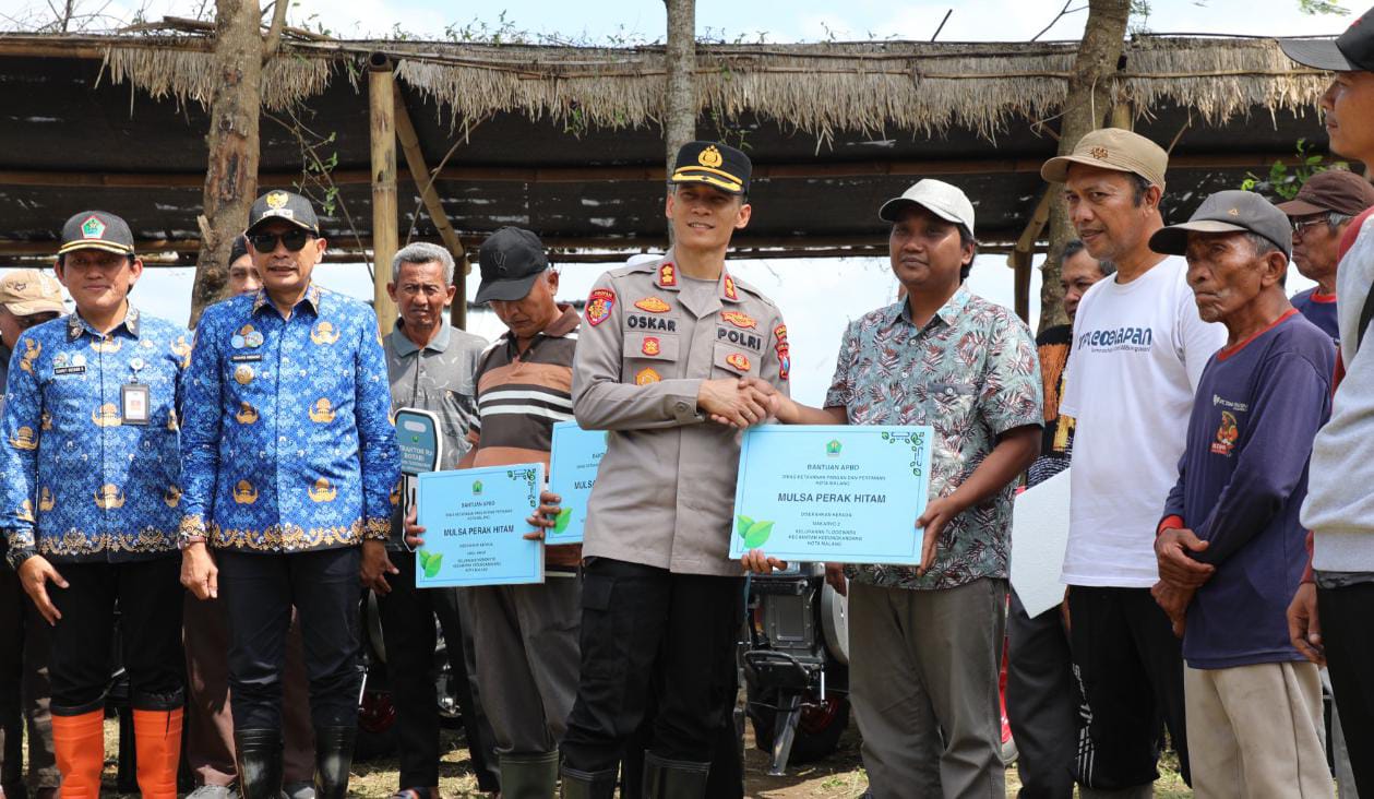Saat dilokasi Wakapolresta Malang Kota AKBP Oskar Syamsuddin juga menyerahkan beberapa bantuan dari Dispangtan Kota Malang untuk mengoptimalkan pertanian