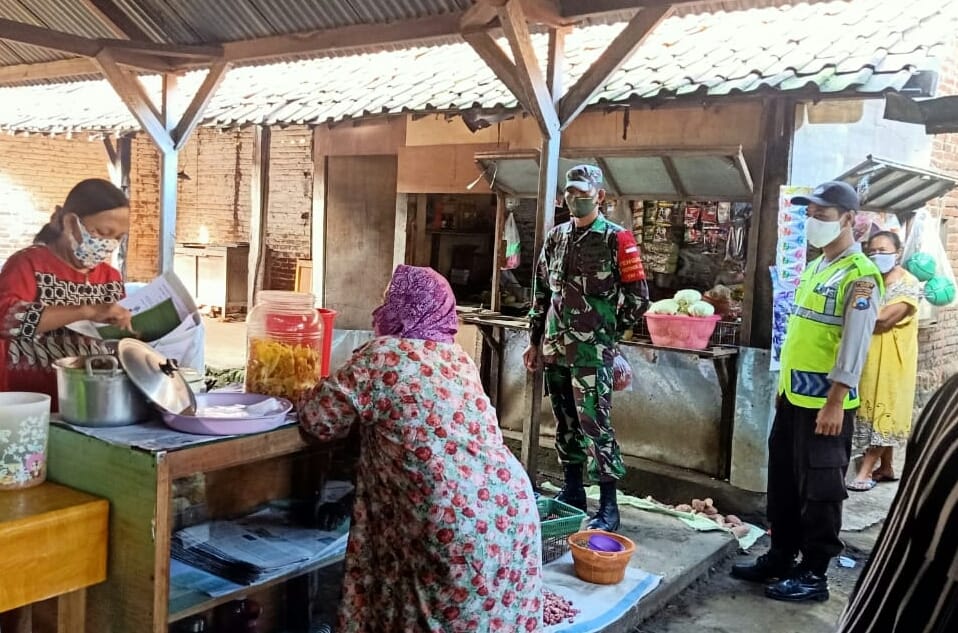 Memox.co.id – Batituud Koramil 0818/04 Ngantang Serma Nursahid bersama Babinsa Ngantang, Bhabinkamtibmas dan perangkat desa setempat, melaksanakan sosialisasi protokol kesehatan di tempat-tempat keramaian, pasar, tempat ibadah dan rumah-rumah warga, Selasa (16/06/2020).