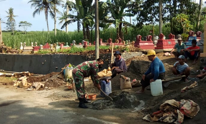 Malang, Memox.co.id – Babinsa Koramil 0818/13 Kalipare bersama masyarakat Desa Kaliasri Kecamatan Kalipare melaksanakan kegiatan kerja bakti membersihkan fasilitas umum dan pembuatan plesengan di area makam Desa Kaliasri, Senin (15/03/2021).