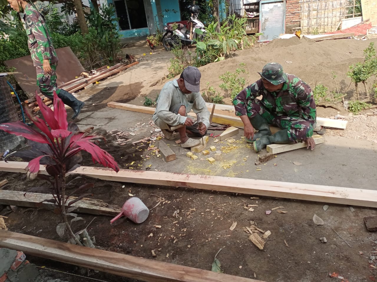 Proses penyambungan kayu memang harus dilakukan oleh tukang kayu dan ahli. Tidak semua orang bisa. Maka dari itu, Pelda Dahlan bersama Babinsa Serda Agus yang ikut membangun rumah milik Lasianto.