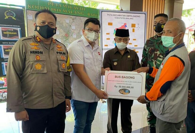 Pemberian bantuan secara simbolis tersebut diberikan Bupati Malang Sanusi didampingi Manager Keuangan PO Bagong, Sandi Suwito Susilo, yang merupakan putra dari Dirut PO Bagong Transport Hari Susilo kepada Kepala BPBD Kabupaten Malang, Bambang Istiawan. Disaksikan Kapolres Malang AKBP Hendri Umar dan Dandim 0818 Letkol Inf Yusuf.