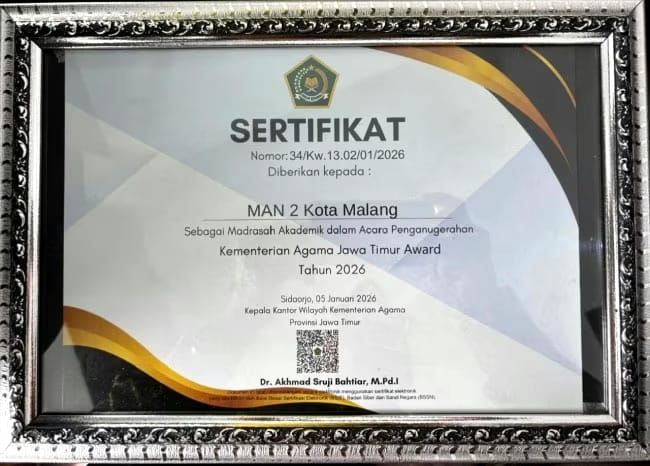 Alhamdulillah, penghargaan ini merupakan hasil kerja kolektif seluruh warga MAN 2 Kota Malang. Capaian ini menjadi motivasi bagi kami untuk terus memperkuat mutu akademik, meningkatkan inovasi pembelajaran, serta menyiapkan peserta didik yang unggul, berkarakter, dan siap menghadapi tantangan masa depan,” ungkapnya. (fik/man)
