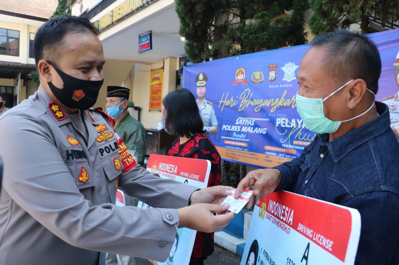 Malang, Memox.co.id – Jelang Hari Bhayangkara ke 74 yang jatuh pada tanggal 1 Juli 2020, Satlantas Polres Malang menggratiskan biaya pembuatan Surat Izin Mengemudi (SIM) bagi warga yang lahir 1 Juli, Sabtu (27/06/2020).