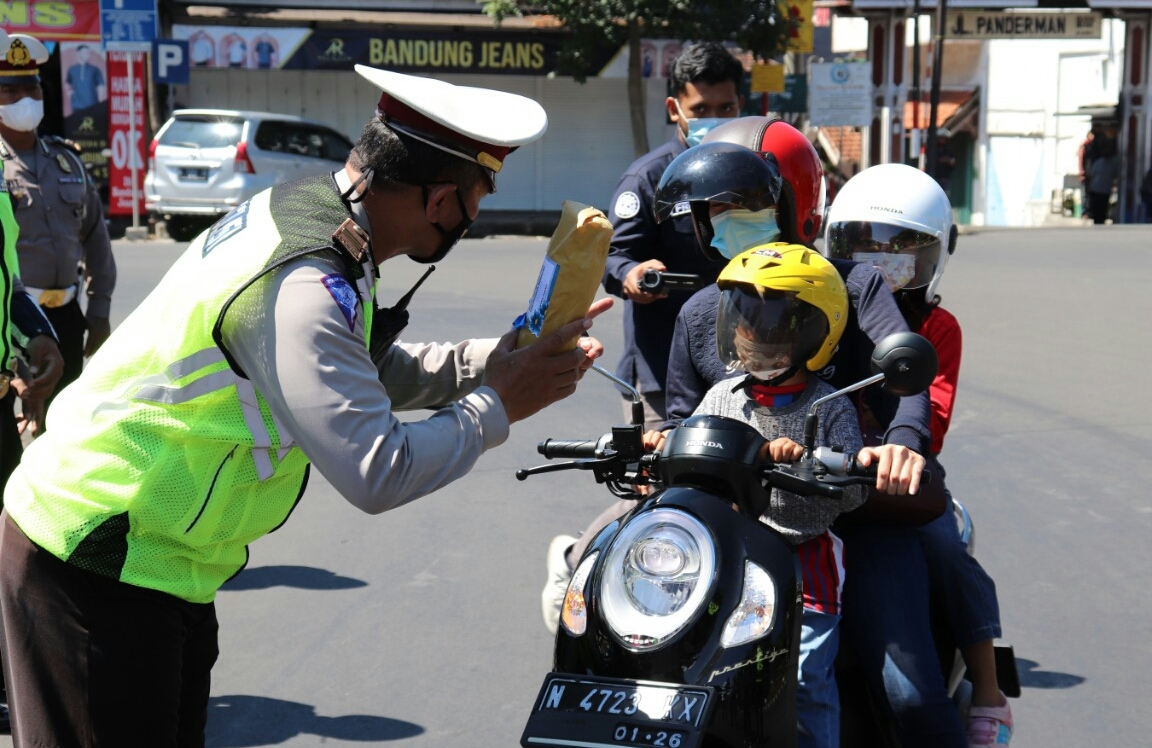 “Tidak hanya itu, kami juga memberikan hadiah kejutan kepada masyarakat yang sudah taat Prokes dan tertib berlalu, kami berharap apa yang kami berikan ini bisa meningkatkan kesadaran masyarakat akan bahaya Covid-19 dan selalu taat dalam berlalu lintas ,”jelasnya.(fik)