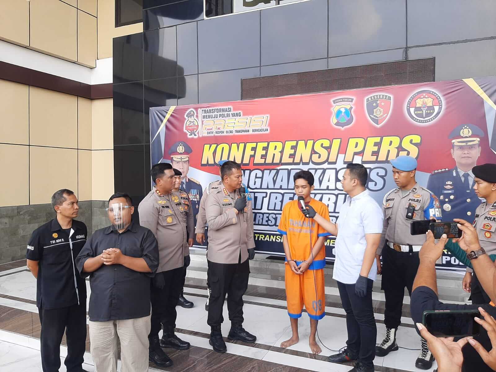 “Akibatnya, tersangka marah dan emosi langsung mengeluarkan pisau dari dalam tas. Saat itu tangan kanan memegang sebilah pisau dan tangan kiri memegang 2 bilah pisau. Kemudian tersangka memaksa korban untuk pulang sambil membacokkan pisau yang dipegang di tangan kanan pada meja kasir yang ada di depan korban. Karena ketakutan, akhirnya korban bersedia untuk pulang dengan tersangka,” lanjut Kapolres.
