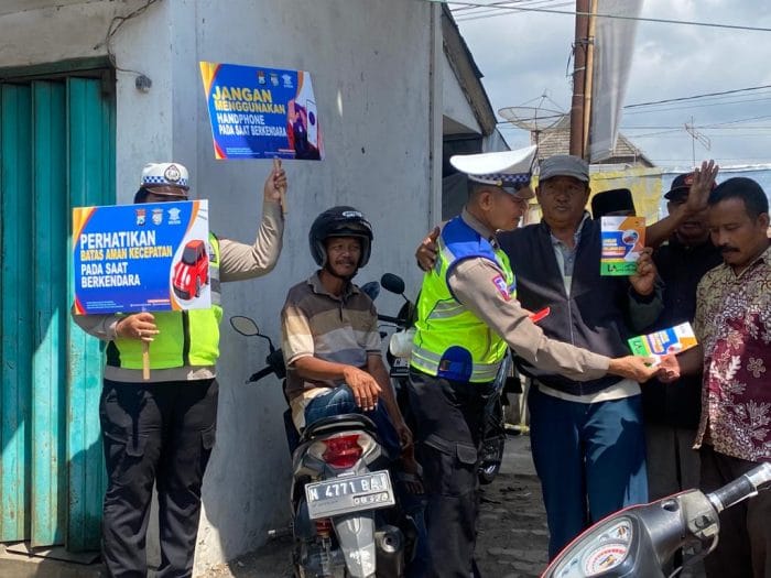 MEMOX.CO.ID – Jelang berakhirnya pelaksanaan Operasi Zebra Semeru 2023 Satlantas Polres Malang melaksanakan sosialisasi keselamatan berlalu dengan sasaran pengemudi ojek pengkolan yang ada di Pasar Gondanglegi Kabupaten Malang, Sabtu (16/09/2023)