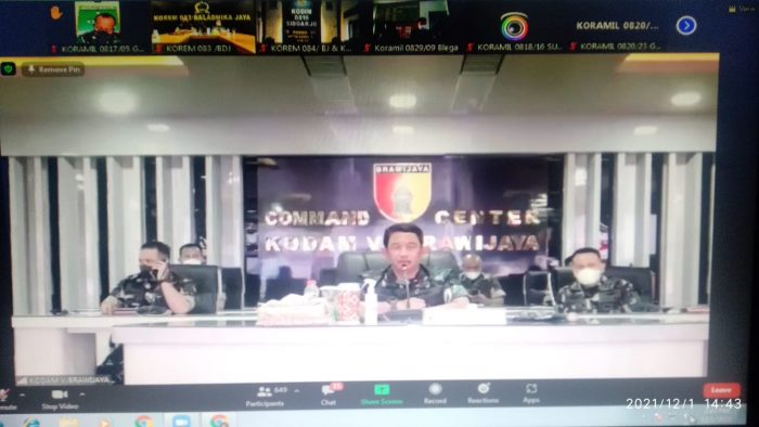 Kota Malang, Memox.co.id – Atensi Pangdam V/Brawijaya Mayjen TNI Suharyanto, terhadap peran satuan komando kewilayahan selama pandemi Covid-19 dalam teleconference yang diikuti oleh Danrem 083/Bdj Kol Inf Irwan Subekti menjadi topik penyampaiannya, Rabu (01/12/2021).