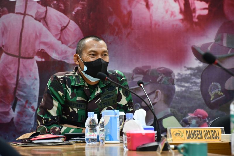 Danrem 083/Bdj, Kolonel Inf Irwan Subekti yang mengikuti jalannya kegiatan ini sejak 18.30 WIB memperhatikan dengan seksama paparan yang disampaikan dalam rapat tersebut. Pangdam V/Brw juga mengingatkan bahwa penurunan angka kasus Covid-19 tersebut tidak membuat lengah akan tetapi tetap waspada dan hati-hati pada semua pihak. Mematuhi protokol kesehatan yang telah menjadi imbauan pemerintah serta mengejar target vaksinasi adalah solusi dalam menghadapi pandemi.