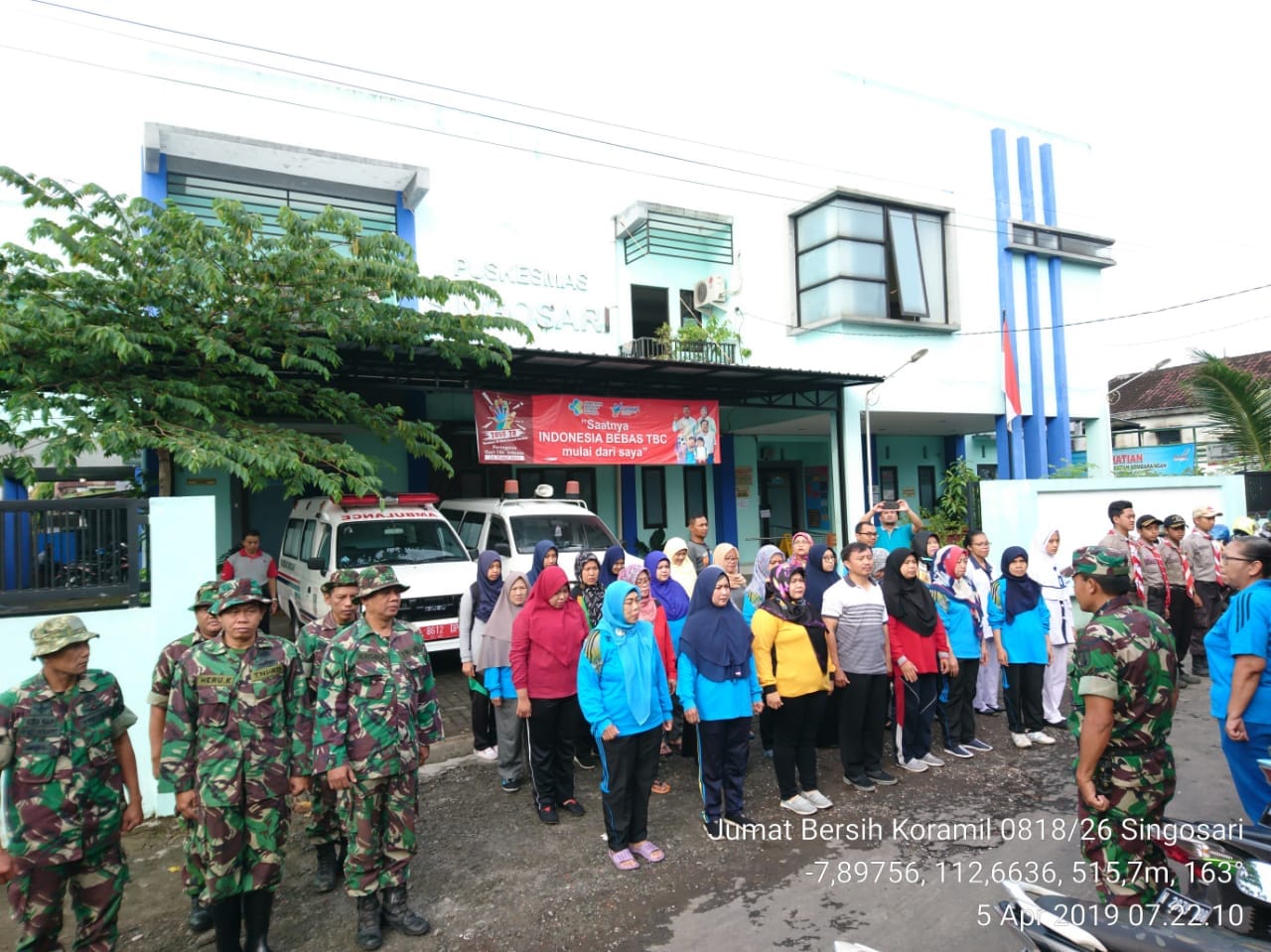 Kegiatan Jumat Bersih dalam rangka karya bhakti pasca bencana hujan deras disertai angin puting beliung pada hari Kamis (4/04/19) di Puskesmas Singosari Jl Tohjoyo Gg 3 Rt 05 Rw 07 Kelurahan Pagentan Kecamatan Singosari.