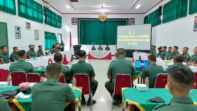 Malang, Memox.co.id – Korem 083/Bdj menggelar kegiatan verifikasi data dan statistik satuan jajaran Korem 083/Bdj Ta. 2022 bidang ops diikuti oleh seluruh Pasi ops dan Bati ops disatuan Kodim jajaran Korem 083/Bdj, Rabu (08/09/2022).
