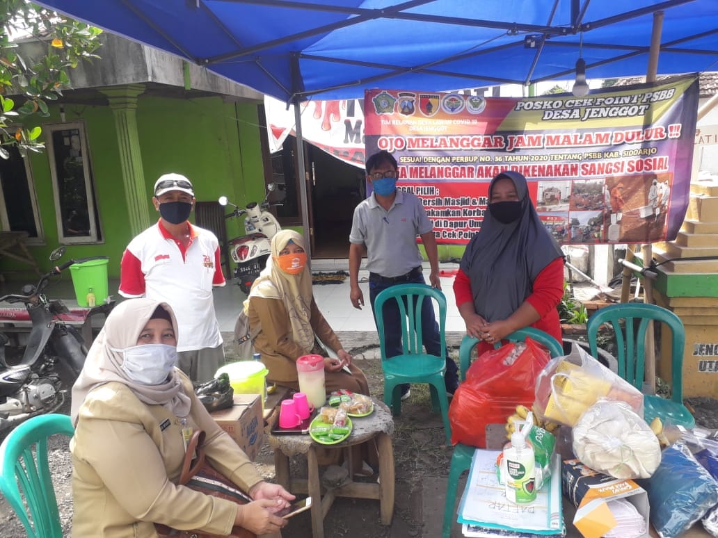Pos check point ini didirikan untuk mengantisipasi penyebaran wabah virus corona (Covid-19). Untuk mempermudah pemantauan serta pengawasan, setiap pintu masuk gang pemukiman juga dipasang palang pintu atau portal. “Pos check point itu dipusatkan pada satu titik, yakni berada didepan kantor balai Desa Jenggot. Dikarenakan wilayah Desa Jenggot itu, hanya antara selatan dan utara yang terpisah dengan jalan raya utama menghubungkan Porong-Krembung,” ucap Pj Kepala Desa Jenggot Edi Suyanto, Jumat (19/06/2020) siang.