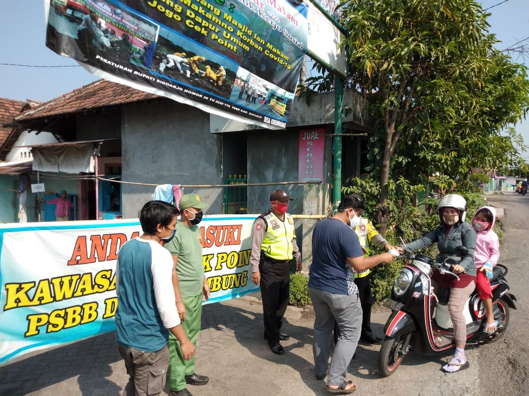 Sidoarjo, Memox.co.id – Pemerintah Desa (Pemdes) Krembung Kecamatan Krembung mendirikan Pos Check Point di dua lokasi, bertujuan untuk menekan angka penyebaran Covid-19. Penempatan pos tersebut berada di depan SMEA Budhi Dharma Lingkungan RT 24/RW10 dan Lingkungan RT 09/RW 04 Dusun Krembung Utara. Pos dijaga oleh tim relawan yang berasal dari unsur Polri, TNI, perangkat desa serta warga RT/ RW setempat.