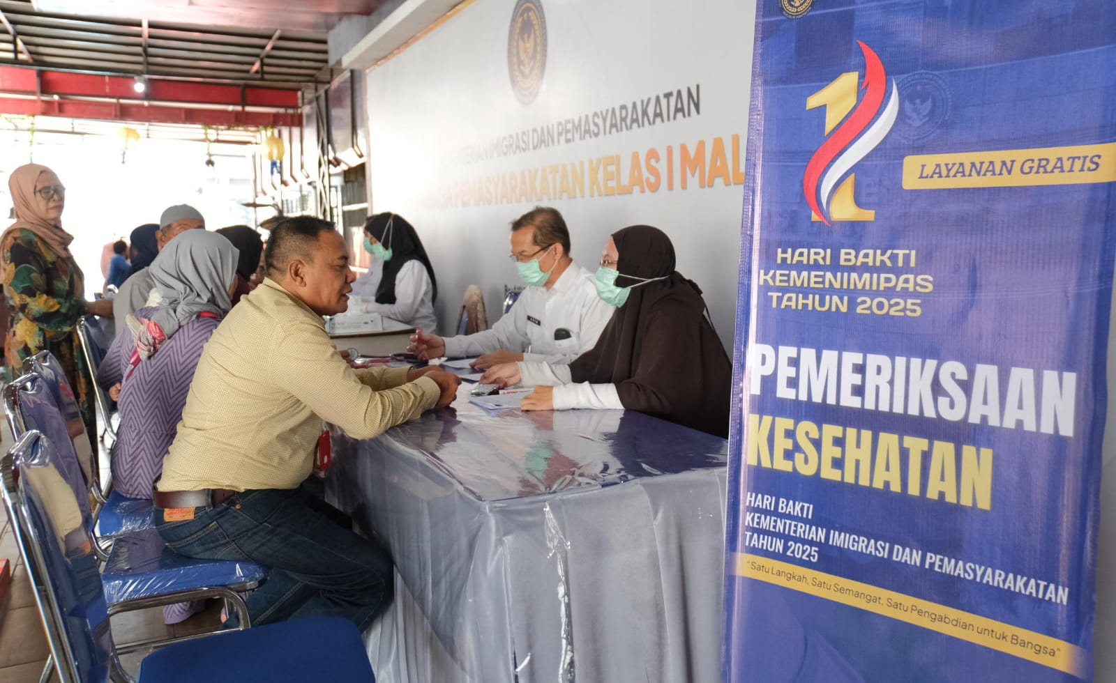 Selepas kegiatan tasyakuran, Lapas Kelas I Malang melanjutkan perayaan dengan membuka pelayanan kesehatan gratis bagi masyarakat, khususnya para pengunjung lapas.