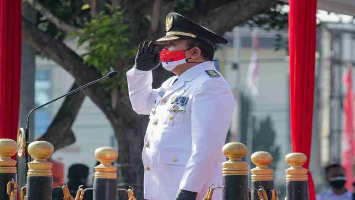 Bupati Jember Ir. H. Hendy Siswanto saat memimpin upacara Hari Ulang Tahun ke 76 Republik Indonesia di Alun-alun Kabupaten Jember, Selasa (17/08/2021). Dalam sambutannya berharap semua elemen masyarakat bergotong royong untuk memutus penyebaran Covid-19.