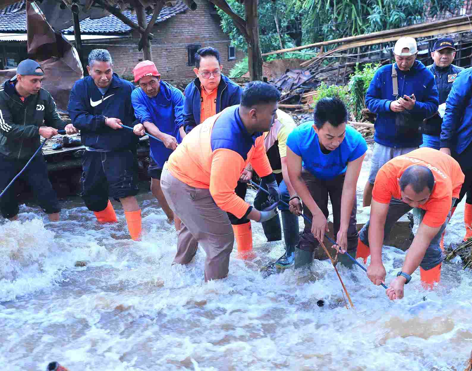 “Datang pukul 04.30 dan langsung melihat jembatan yang memang banyak batu dan gelondongan kayu yang menutup aliran air di dasar jembatan sehingga air mengalir ke rumah warga,” ungkap Adhy.