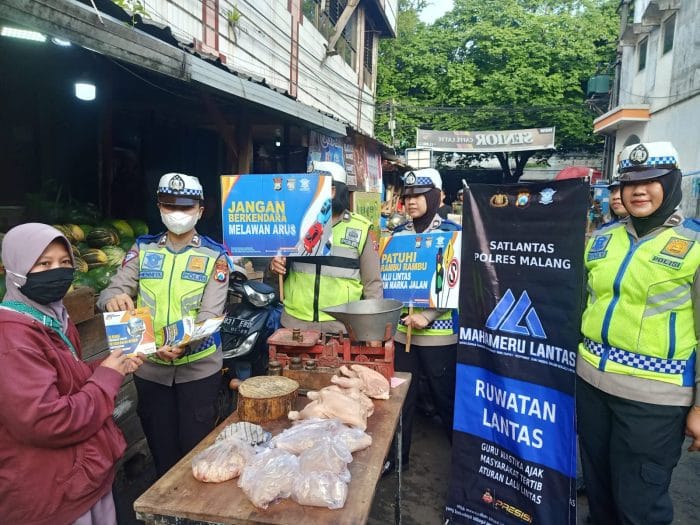 MEMOX.CO.ID – Polres Malang melalui Satlantas melaksanakan kegiatan sosialisasi keselamatan berlalu lintas di Pasar Singosari Kabupaten Malang, Selasa (05/02/2024).