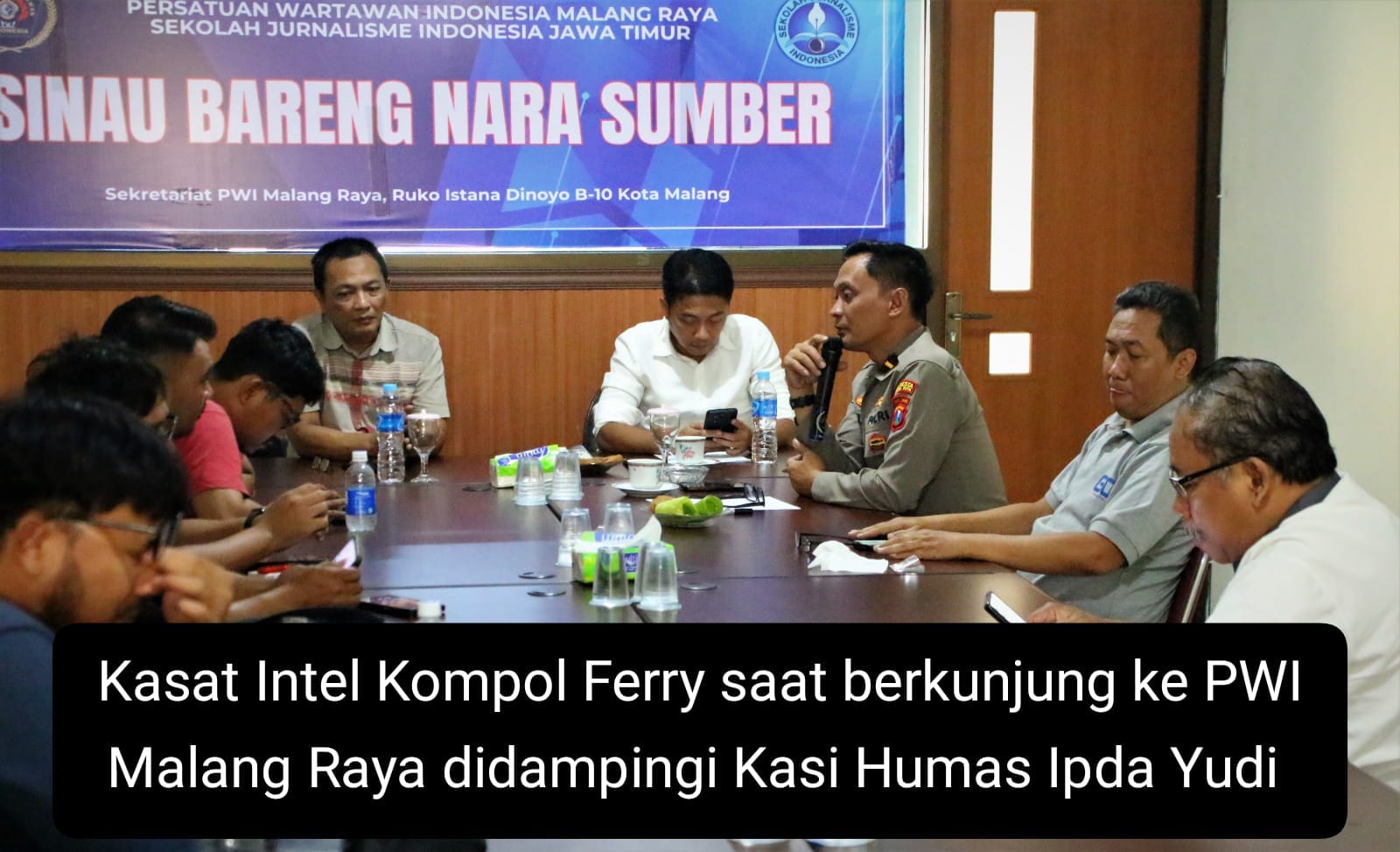 “Kami mohon bantuan dan kerja sama PWI Malang Raya dan para awak media untuk membantu menjaga kondusifitas melalui pemberitaan yang dapat mengedukasi dan menyejukkan masyarakat,” ungkapnya didampingi Kasi Humas Ipda Yudi.