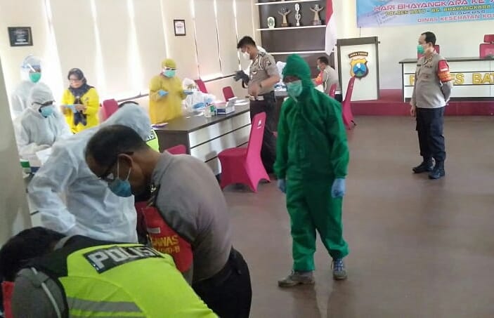 Sebanyak 150 anggota TNI Polri meliputi 100 anggota Polres Batu dan 50 anggota Kodim 0818 Kabupaten Malang- Batu, satu persatu menjalani repid test bertempat di Gedung Rupatama Polres Kota Batu.