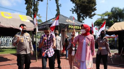 Kedatangan Walikota Batu Dewanti Rumpoko disambut Kapolres Batu AKBP Catur W Wibowo, S.I.K bersama para pejabat utama jajaran kepolisian Polres Batu dengan tetap mengedepankan Prokes Covid-19.
