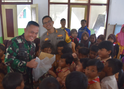 Pemberian bantuan alat-alat sekolah bagi murid sekolah tersebut dilakukan langsung oleh Kapolres Bondowoso AKBP Wimboko, S.I.K. bersama Dandim 0822/Bondowoso, Letkol Arm Suhendra disambut riang gembira oleh para siswa-siswi sekolah yang terkena dampak banjir bandang.