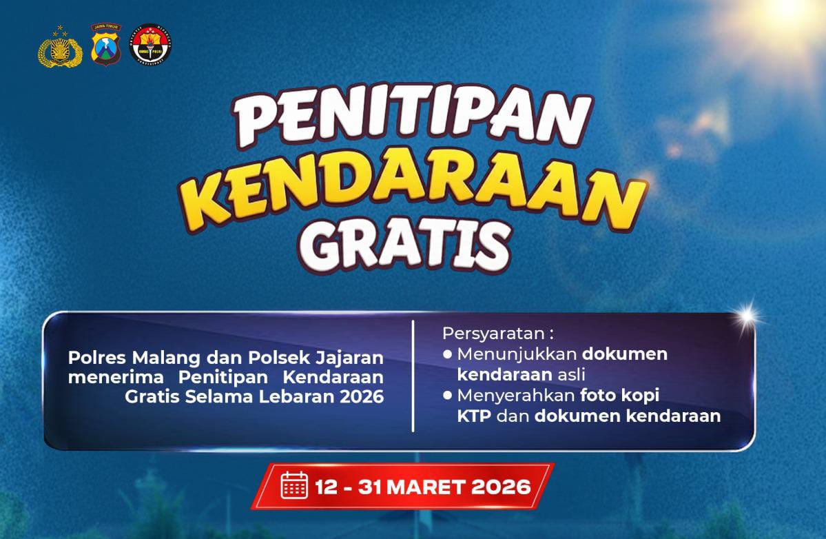 Layanan penitipan kendaraan ini dapat dimanfaatkan mulai 12 Maret hingga 31 Maret 2026. Penitipan bisa dilakukan di Mapolres Malang maupun di 30 Polsek jajaran yang tersebar di seluruh wilayah hukum Polres Malang.