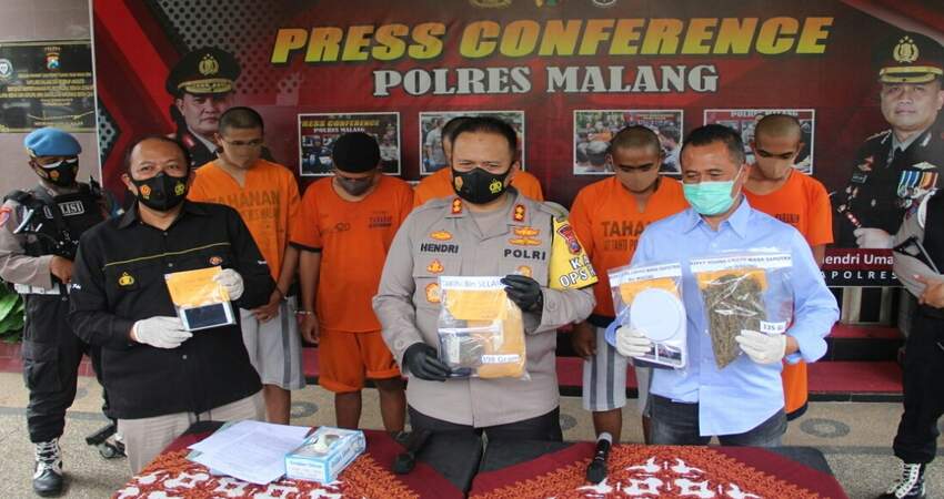 Dalam keterangannya Kapolres Malang AKBP Hendri Umar S.I.K., M.H. mengatakan, kelima tersangka ditangkap di tempat yang berbeda, dengan 3 TKP (Tempat Kejadian Perkara) hasil dari pengembangan informasi yang disampaikan masyarakat perihal adanya seseorang yang kerap menggunakan dan mengedarkan narkotika jenis ganja.