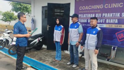 PEMBEKALAN: Petugas Satpas SIM Polres Malang saat memberikan pembekalan ujian praktek kepada pemohon SIM