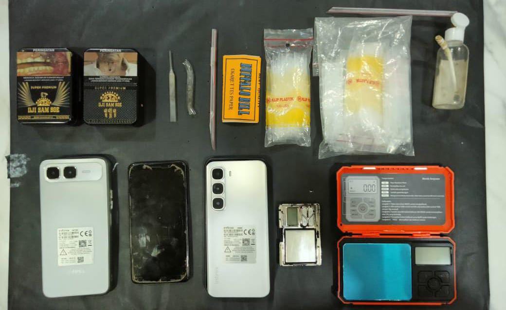 Selain sabu dan ganja, polisi juga menyita berbagai perlengkapan seperti pipet kaca, plastik klip kosong, kertas papir, wadah rokok, hingga dua unit timbangan digital. Semua barang bukti tersebut kini diamankan di Polres Malang.