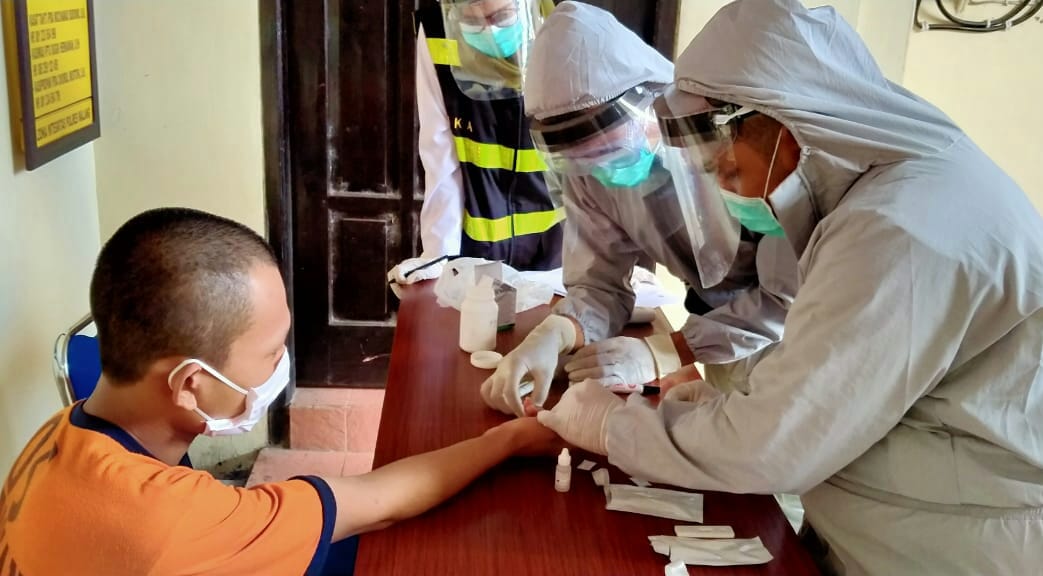 Malang,Memox.co.id– Tim Dokes Polres Malang lakukan rapid test terhadap 13 tahanan Polres Malang yang akan di relas atau dikirim ke Kejari ( Kejaksaan Negeri) Kepanjen Kabupaten Malang,Senin (08/06/2020).