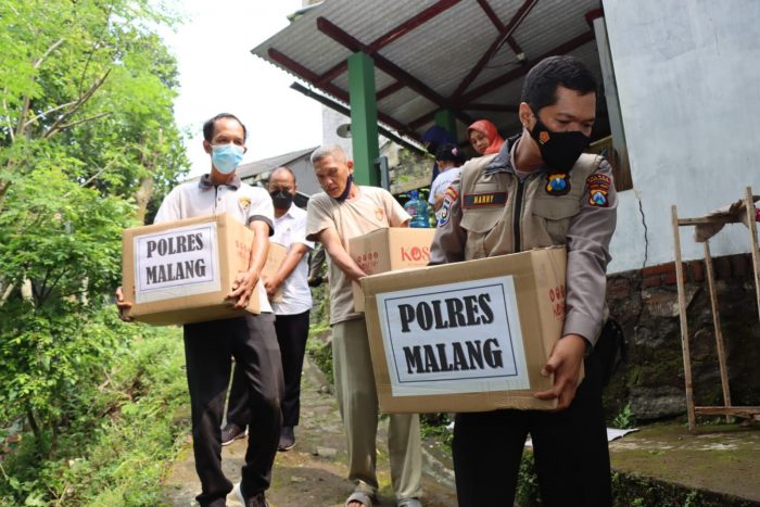 Penyaluran bantuan tersebut dilakukan Wakapolres Malang Kompol Rizky mewakili Kapolres Malang AKBP Ferli Hidayat, S.I.K didampingi Kabagops, Kompol I Made Prawira, dan Kapolsek Lawang Kompol Yatmo.