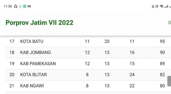 Pamekasan, Memox.co.id – Klasemen akhir Kabupaten Pamekasan pada pekan olahraga Provinsi (Porprov) Ke-VII Provinsi Jawa Timur 2022 nyungsep. Pasalnya, Kabupaten Pamekasan hanya finish pada peringkat 19. Padahal, pada Porprov Jatim Ke-VI Tahun 2019, Kabupaten Pamekasan finish diperingkat 14, dengan total 32 medali. Rinciannya, 9 medali emas, 16 perak, 7 perunggu.