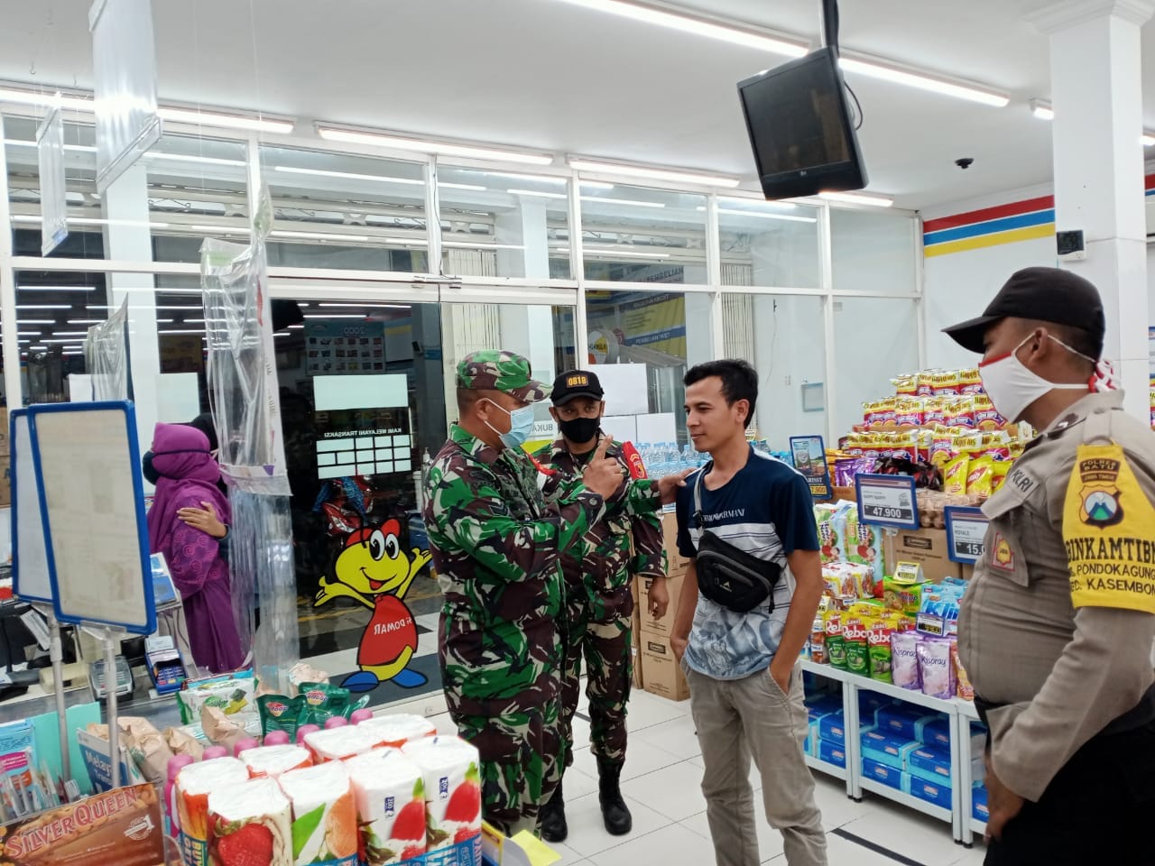 Babinsa jajaran Koramil Kasembon terus melaksanakan penegakan kedisiplinan mematuhi protokol kesehatan, objek yang Pertama kita pilih tentu tempat keramaian.