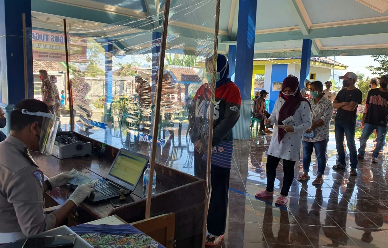 Batu,Memox.co.id -Dalam rangka membantu para WP( Wajib Pajak) membayar pajak kendaraan bermotornya KB Samsat Batu Kota buka layanan Samling (Samsat Keliling) di Kampung Tangguh Semeru di Desa Pandansari Kecamatan Ngantang, Jumat (13/06/2020).