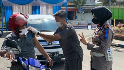 Kegiatan vaksinasi dosis 2 Drive Thru di Pos Lantas 9.0 sebanyak 94 orang masyarakat pengendara telah mendapatkan layanan vaksinasi Drive Thru Satlantas Polres Batu dipimpin Kasat Lantas Polres Batu AKP Indah Citra Fitriani,S.I.K.