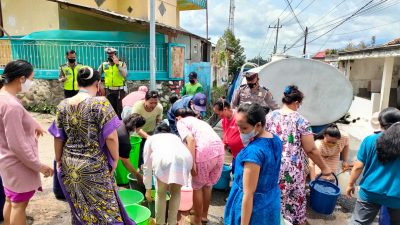 Satlantas Polres Batu Salurkan Air Bersih ke Warga Terdampak Banjir Bandang