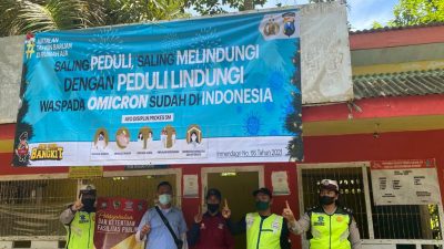 Malang, Memox.co.id – Satlantas Polres Malang terus melaksanakan imbauan Prokes Covid-19 dalam bentuk pemasangan banner dan spanduk bertuliskan waspada terhadap Covid-19 varian Omicron, Sabtu (25/12/2021).