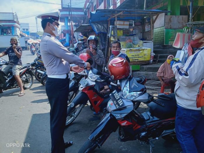 Dalam giat kali ini Polres Malang melalui satuan fungsi Satlantas melaksanakan sosialisasi kepada masyarakat maupun pedagang yang berada di area Pasar Lawang Kecamatan Lawang Kabupaten Malang.