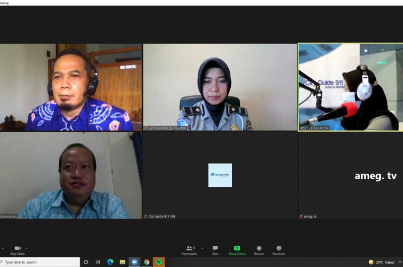 Malang, Memox.co.id – Satlantas Polres Malang melalui unit Dikyasa melaksanakan talk show interaktif secara virtual melalui Radio City Guide 911 FM Malang bersama Dishub Kabupaten Malang dan Fakultas Teknik Universitas Brawijaya, Jumat (13/08/2021).