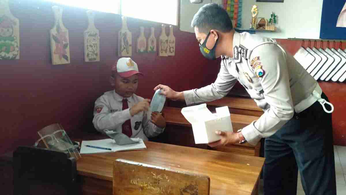 Kegiatan imbauan Prokes yang dirangkai dengan pemberian masker kepada para pelajar sekolah tingkat SD ini merupakan kegiatan rutin yang dilakukan Satlantas Polres Malang dalam upaya menekan penyebaran Covid-19.