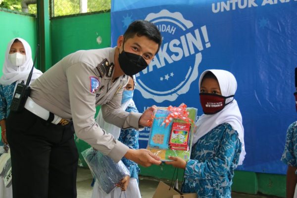 “Kami terus menggelar Vaksinasi anak usia 6-11 tahun yang menjadi atensi Pemerintah Pusat. Hal ini untuk mendukung Pembelajaran Tatap Muka (PTM) terbatas yang sudah mulai dijalankan,” ujar Kasat Lantas Polres Malang AKP Agung Fitriansyah.